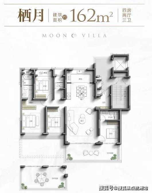 先看四代洋房,约162/164㎡,全四房起步,1梯2户设计,4房2厅3卫。