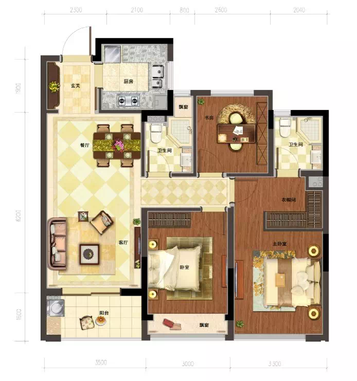 约115㎡户型,更是滨江最近两年难得一见的王牌户型。