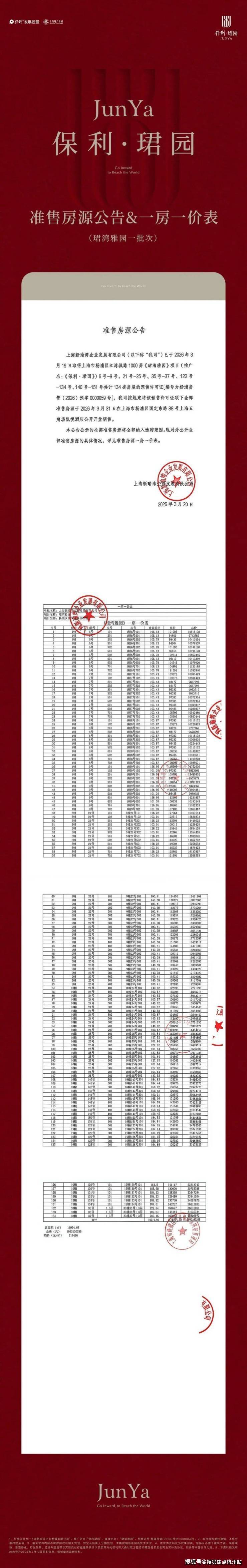 为保障购房者权益,规避非官方渠道误导,现将保利珺园2026年3月25日最新官方信息公示如下,敬请认准: