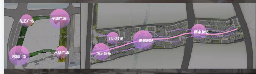 宜人尺度的街区营造,人本舒适的生活体验,街区对人群的包容性,促成24H的活动社群。通过原有经典水乡元素薛家牌坊、渔歌剧场、则水故里、渔人码头,打造现代化场景体验,加强古与今的联系性;同时活跃氛围,将花艺广场、子满广场、树源广场、水脉广场通过一些开放的链接,创造了一些小的场合,提升项目品质。打造无边界多元化生活场景,重新定义了绍兴人居的形态,让人们可以更加亲密的拥抱在一起。