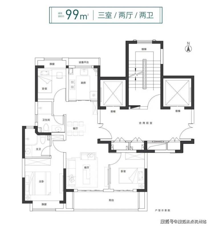 在售户型面积:目前在售户型为建面约 99-121㎡的 3-4 房高层房源,99㎡户型为 3 室 2 厅 2 卫,121㎡户型为 4 室 2 厅 2 卫。