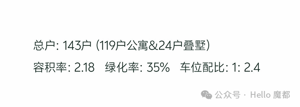 • 体量:全盘仅143户,其中叠墅仅24席,容积率2.18,车位配比1:2.4,纯粹度、私密性极高。