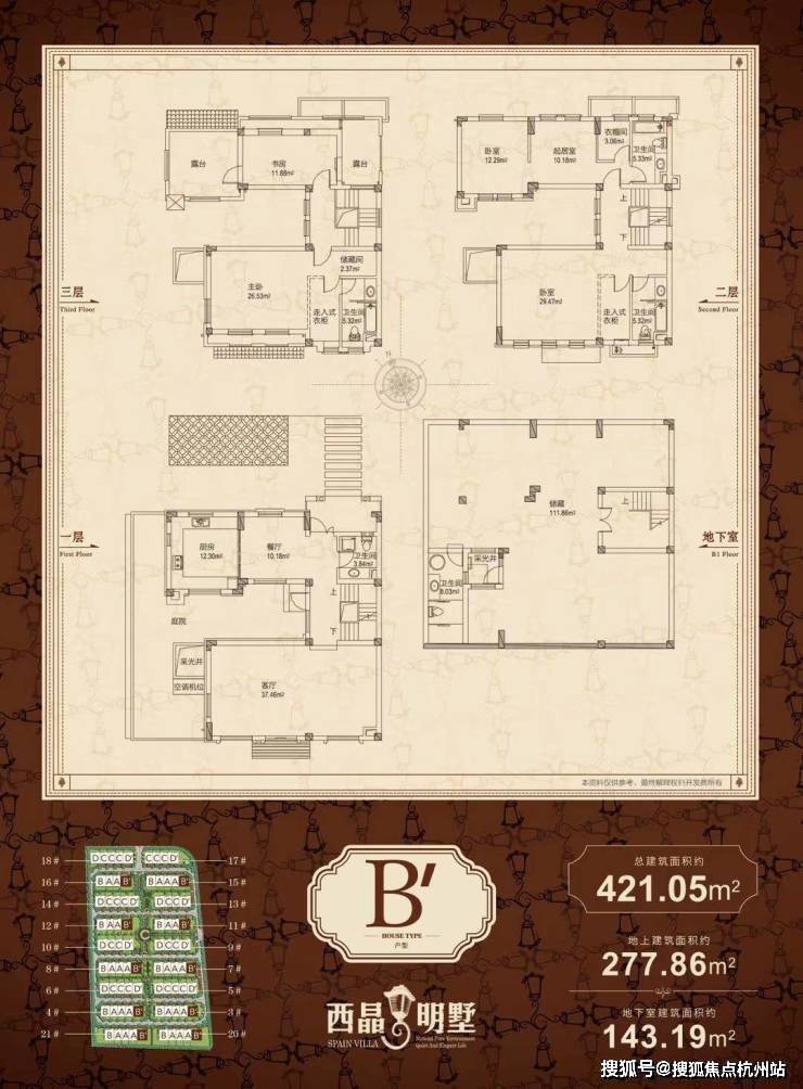 B户型: 面积417.18平方米(包含273.18地上和144.15地下)