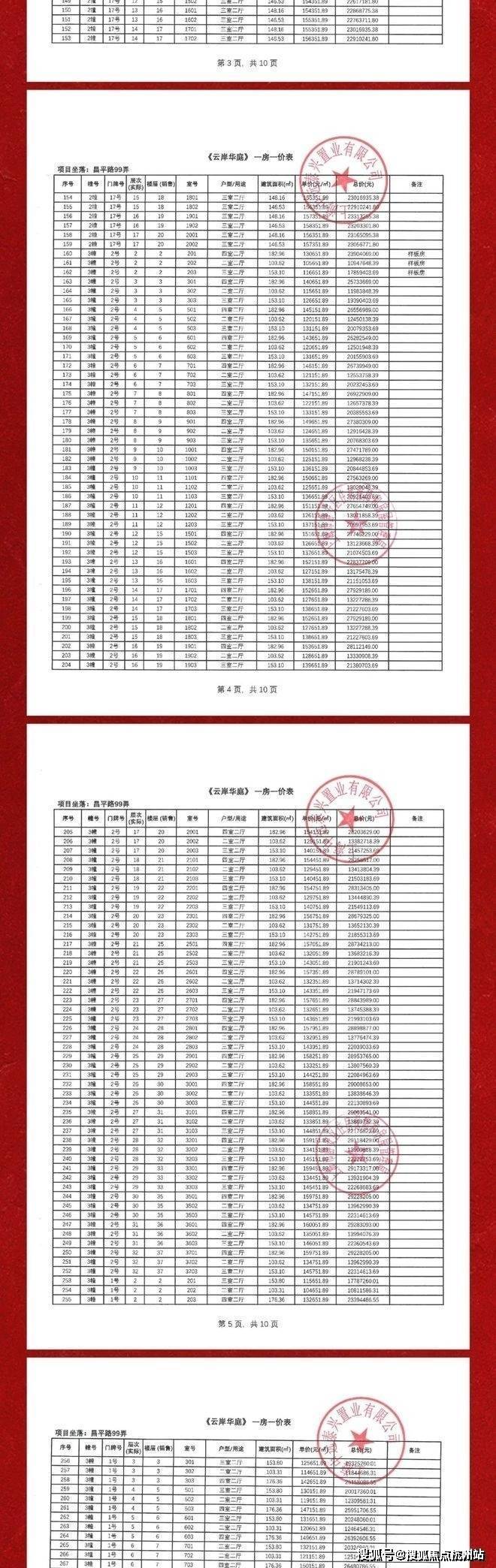 一房一价表如下