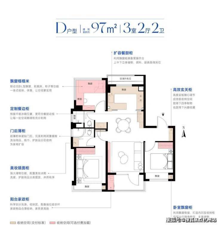通过系统化的收纳设计,每个空间的储物能力都得到了显著提升。以60L容量的24寸行李箱为参照:97m²C户型整体交付柜体总容量约12m³,相当于足足200个行李箱。这种对空间的高效挖掘与利用,轻松解决了业主的储物难题。