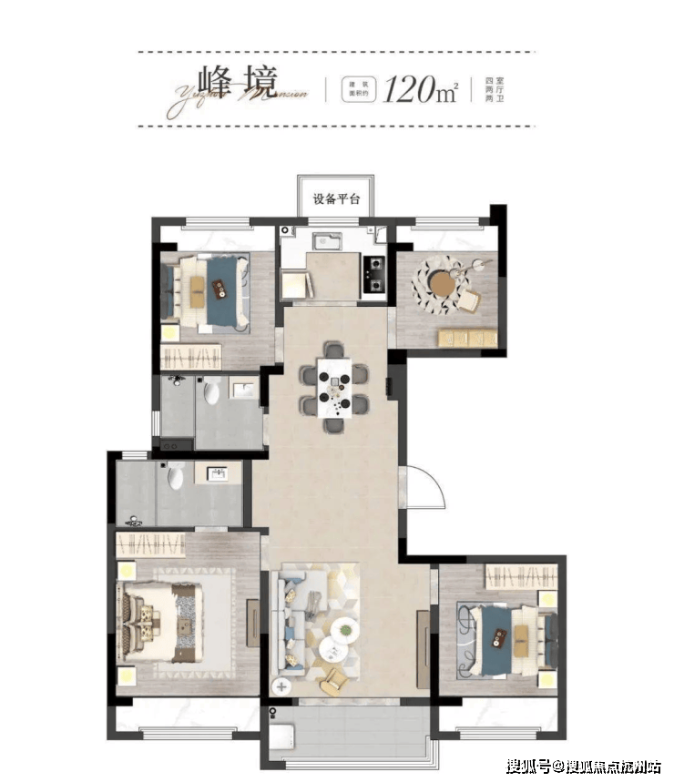 120㎡4室2厅2卫180-220四叶草格局,主卧独立卫浴,双阳台设计