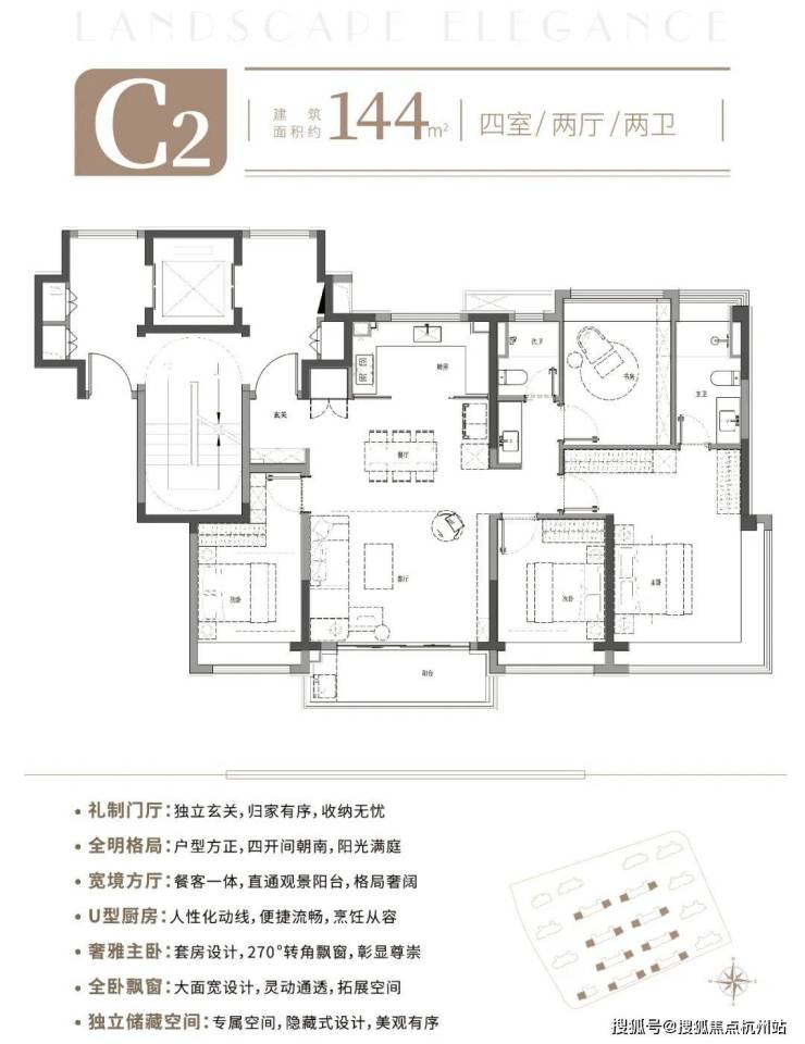相比约100㎡户型,约144㎡为洋房户型,得房率约79%,独立入户花园,进门独立玄关收纳,入户仪式感up!
