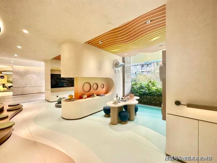 社区内部还有开放式架空层设计,结合建筑、空间、自然环境关系,室内室外联动,呈现一个景观会客、海浪书屋、儿童休闲等多重功能的开放式架空层,目前实景基本还原效果图,未来业主及孩子也有一个玩乐及阅读的开放式公共空间,更具生活趣味~