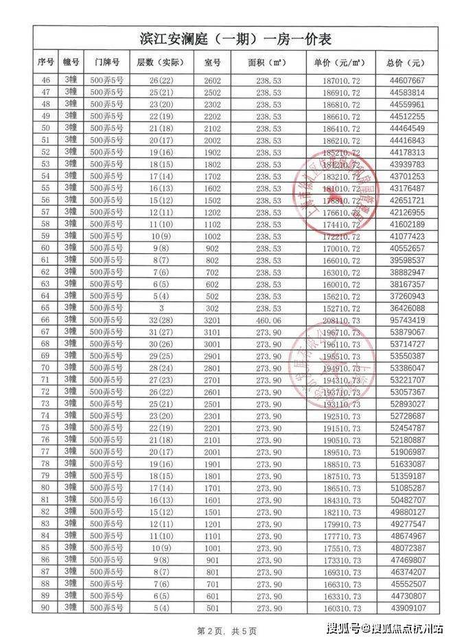 【安澜上海】一房一价表: