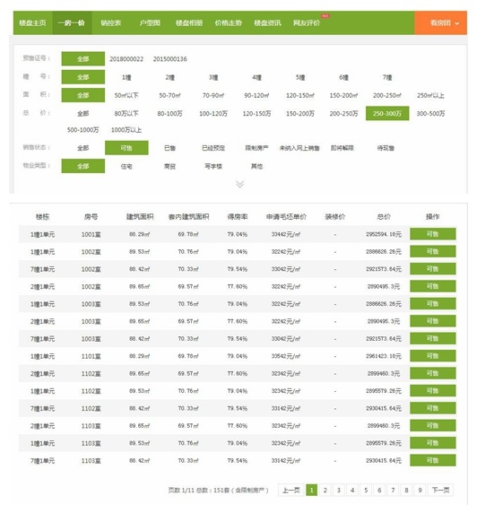 根据官网显示其中250-300万区间的房源占比较大,约151套房源。
