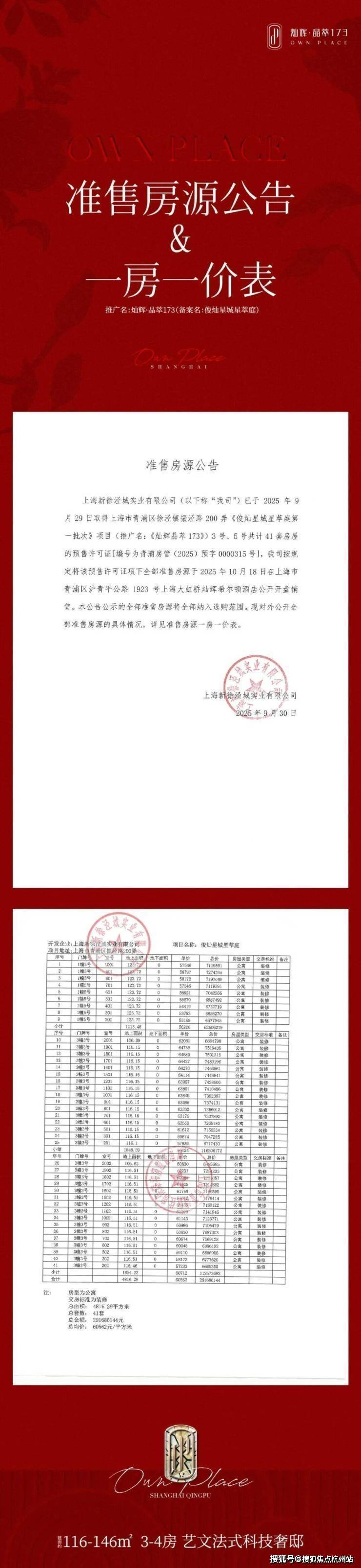 最新消息,一房一价表发布!大虹桥徐泾「灿辉晶萃173售楼处电话☎:400-887-8824」10.7开始认购!推出建面约106-124㎡三房,均价6.05万/㎡!