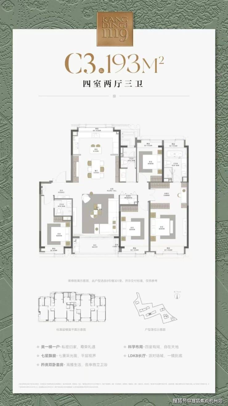 建面约193㎡4房:前期大热的爆款户型,有很多的业主期待这个产品,想买到他的难度可不低,需要及时做好备选。