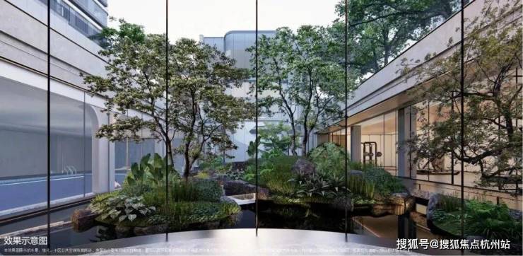 4、下沉式庭院,通过乌桕树、溪流构建一处安静的栖息之境,业主可在这里尽情放空。
