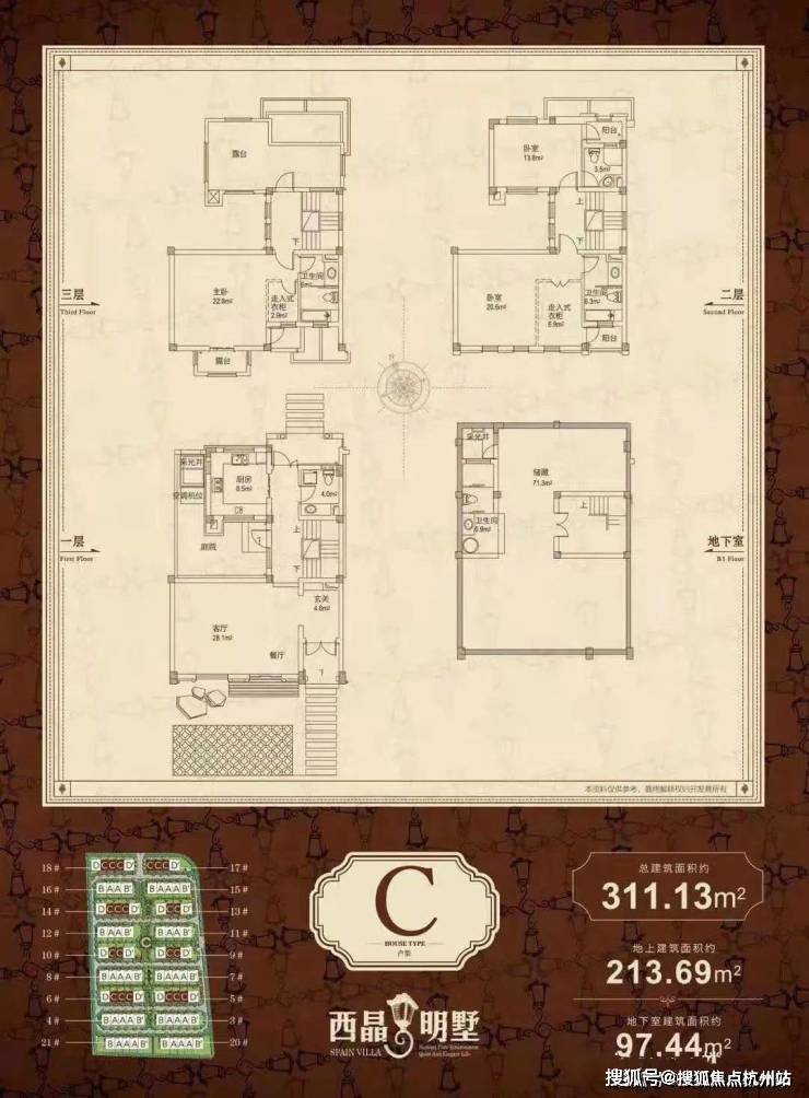 C户型:总311.13 地上213.69 地下97.44(已售馨)
