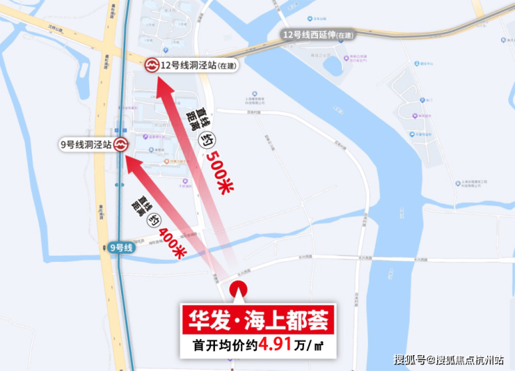 项目直线距离9号线洞泾站约400米,直线距离12号线洞泾站(西延伸线在建中)约500米。