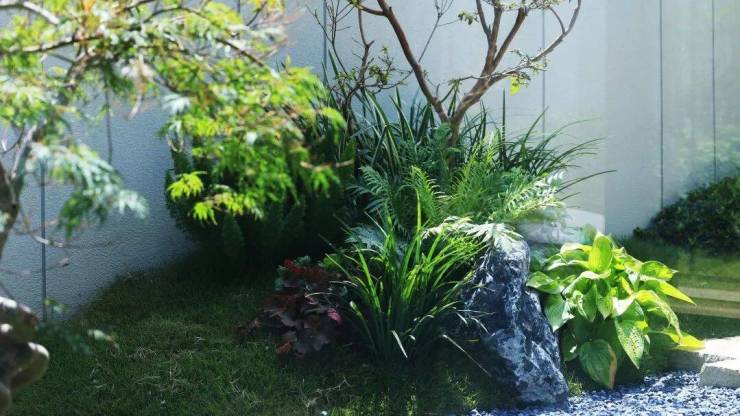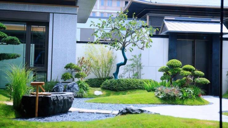 水钵静置,绿影婆娑,营造出 “一步一景” 的沉浸式景观体验,呈现一派东方写意的诗情画意。