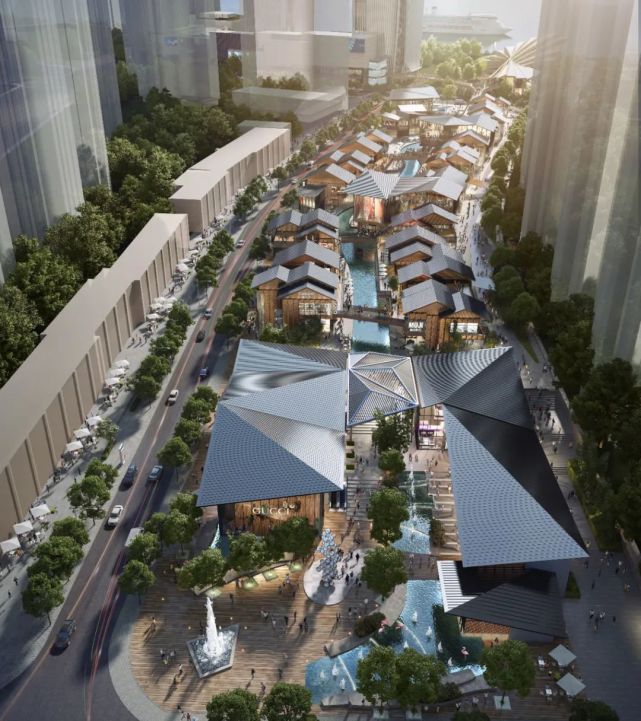 水街布局传承江南水乡肌理,融合时光诗路轴线,每1—2分钟的步行距离设置特色节点广场;水街建筑采用简约大气的“新中式”设计风格,引入一流的文创、零售与餐饮业态,努力将其打造成为富阳市民理想的休闲购物与亲水娱乐街区。