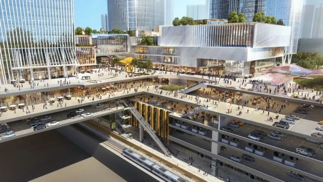 秦望区块交通以TOD站城一体化开发为目标,重构道路交通框架,优化交通组织,构建地上、地下互联互通的道路立体化网络体系。