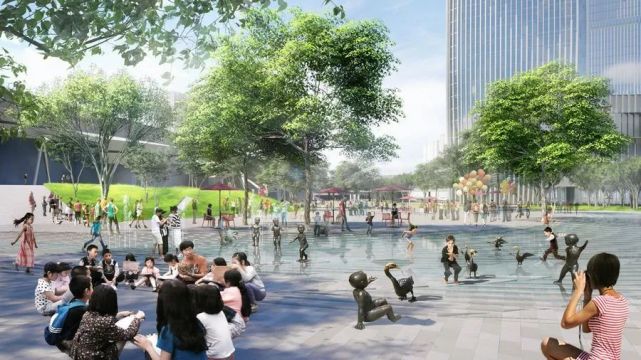 具体来说,主广场将以平原沙洲元素营造,弹性承载年度庆典、户外音乐节、创意集市、市民集会等不同规模的城市大事件,并植入恢弘镜面、广场旱喷等可变景观,为市民游憩娱乐提供少有的空间体验。