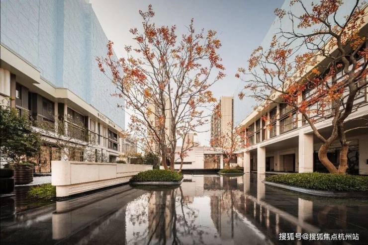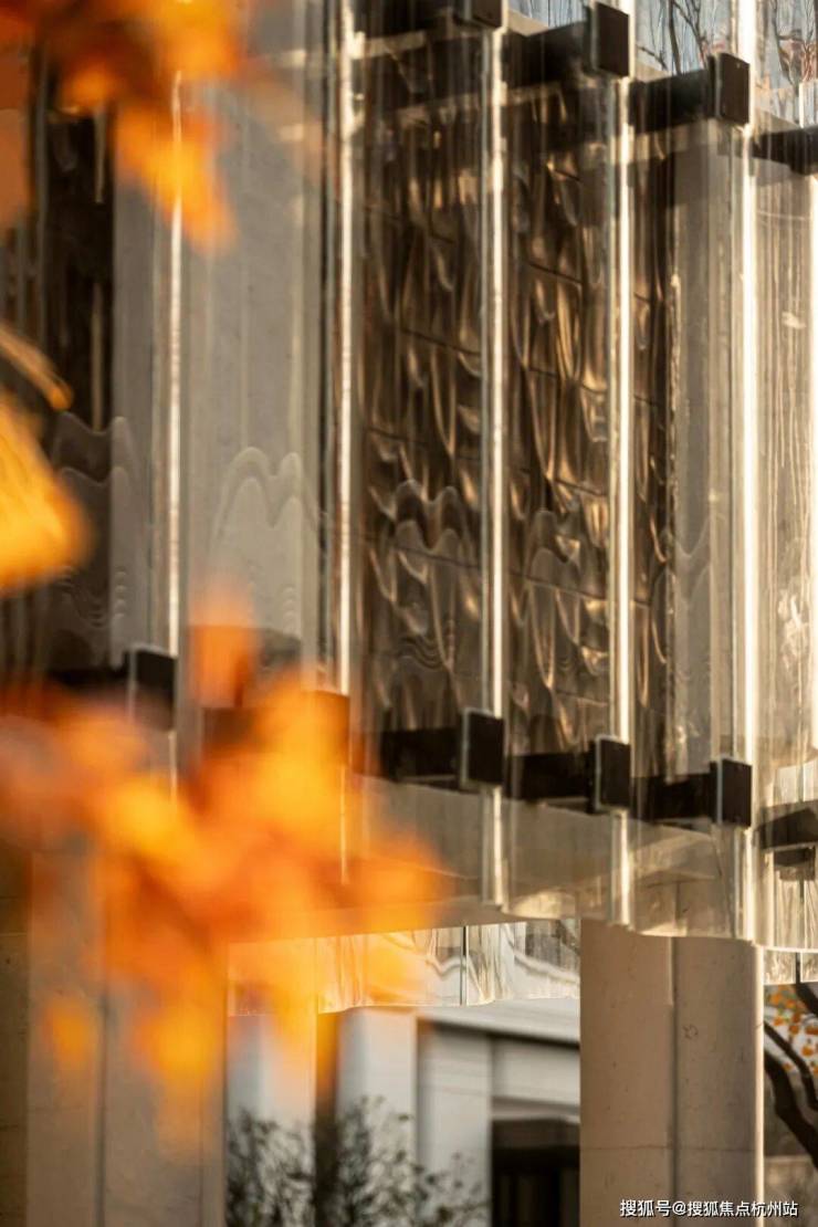 月光米黄石材门庭,经“揉石成缎”技艺赋予石材流动感,搭配玫瑰酒店同款非遗门牌,赋予归家第一重仪式感;超千方镜面主题水院,倒映天光云影与三株原生乌桕风姿,与社区外的水岸意境连贯呼应;