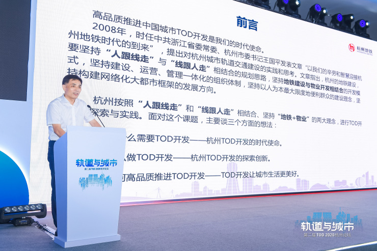 论坛上,杭州市地铁集团有限责任公司副总经理朱秋林表示,杭州高品质推进TOD要做好四个坚持,即“坚持高起点谋划、坚持高水平设计、坚持高强度推进、坚持高标准建设”。针对目前TOD开发存在的相关问题,借鉴先进经验,统一思想,强化领导,完善政策,优化轨道交通场站及周边土地TOD开发机制,形成具有时代特色的、高品质的、高效益的TOD开发模式。