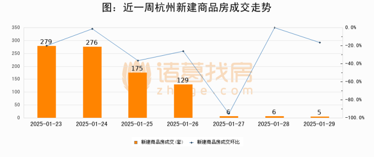 【杭州成交日报】01月29日新房成交5套;涨价房源1套