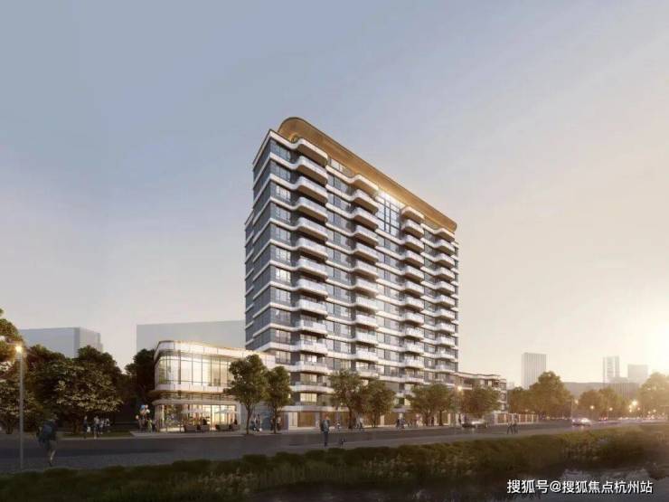 加之建筑顶部的金冠起伏,与景观河交相辉映,串联成金色丝带东西贯通,更是凸显了本项目的高标准、高品质的居住体验。