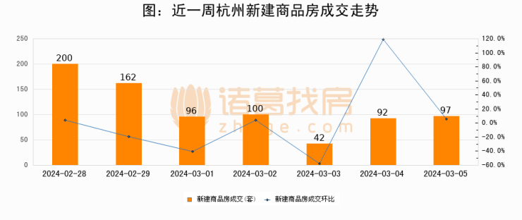 【杭州成交日报】03月05日新房成交97套、二手房159套;涨价房源107套