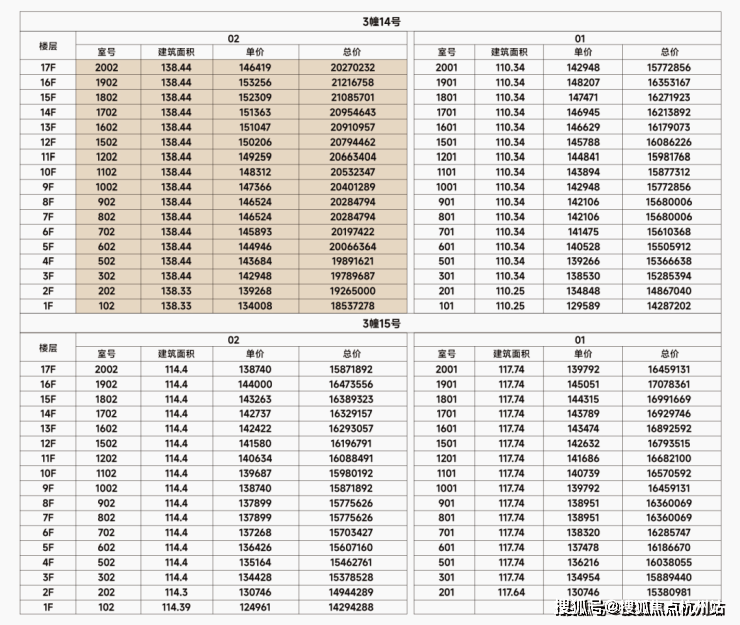 从一房一价表来看,3幢楼15单元的房源,产品更显得诚意十足。