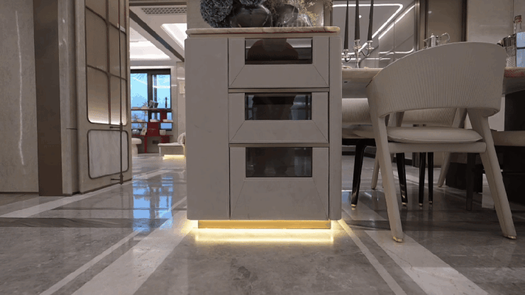 建面约115㎡小户型也可随心切换高光白栓木/雅光球莎木双款木饰面,搭配铂金冰玉等三款岩板背景墙,小户型也有不妥协的专属格调