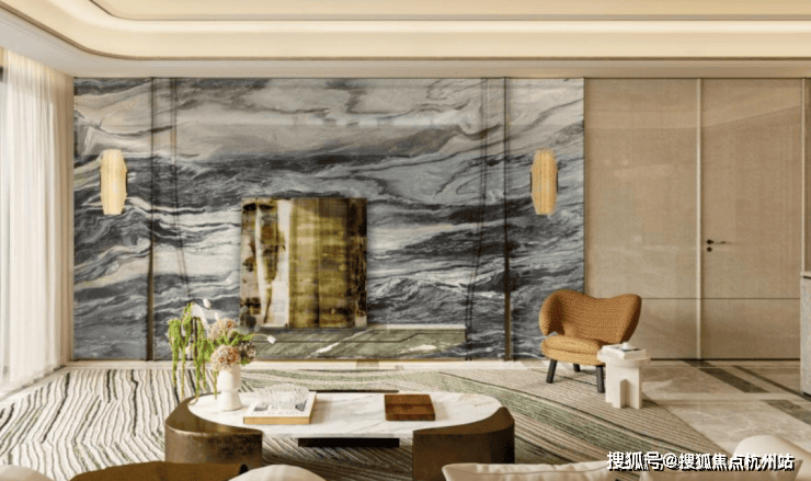 客厅背景墙更解锁海蓝之谜、万象山河、芬迪绿多款天然奢石换肤方案,或海韵灵动,或山河入画,或雅韵内敛。