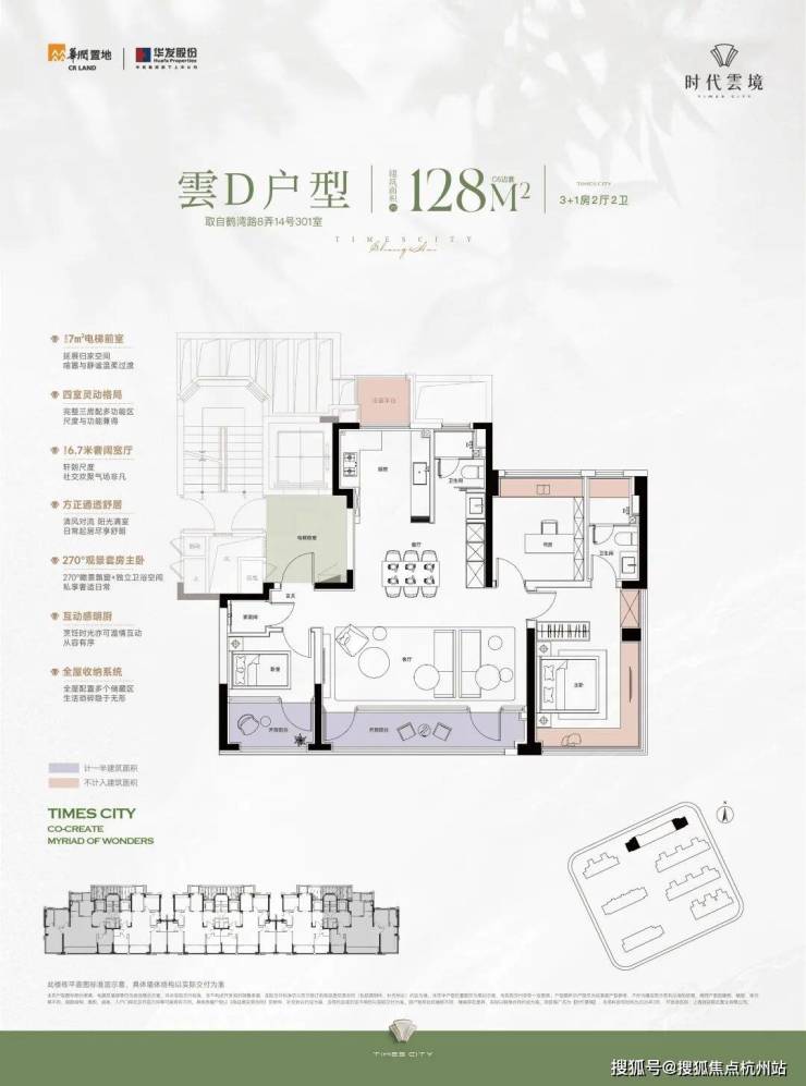 建面约128㎡3+1房:终极改善客户的首选产品。