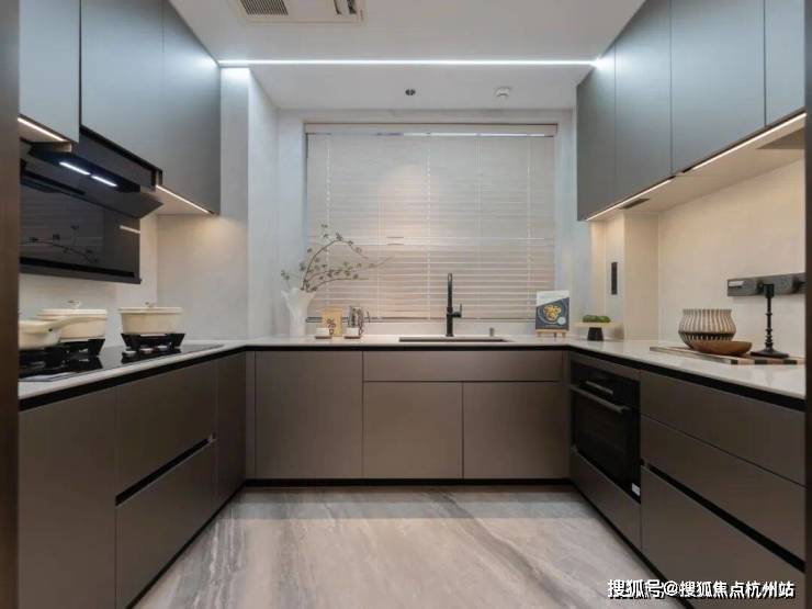 厨电方面,配备国际一线品牌 博世四件套 (三眼灶台、壁挂式侧吸油烟机、15套大容量洗碗机、蒸烤一体机),水龙头和水槽则选用了 科勒 。更亮眼的是,厨房还配了 日立厨房空调 。