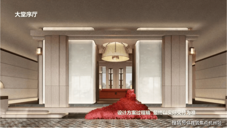 公区方面 ,从归家社区大堂、大堂序厅、以及入户单元大堂一路看过来,体现出一套脉络完整,层层递进的海派顶奢设计语言。