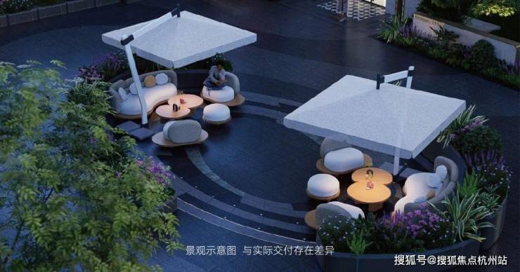 社区景观上,秉承“内外双公园、城市公园一体化”理念,打造出“一轴、一带、一环、九大花园空间”的生态品质社区。