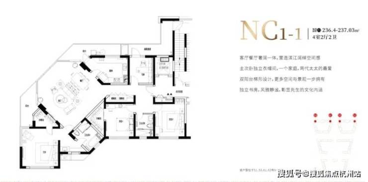 其次,四期户型更突出打造超大景观面,直面一线江景。