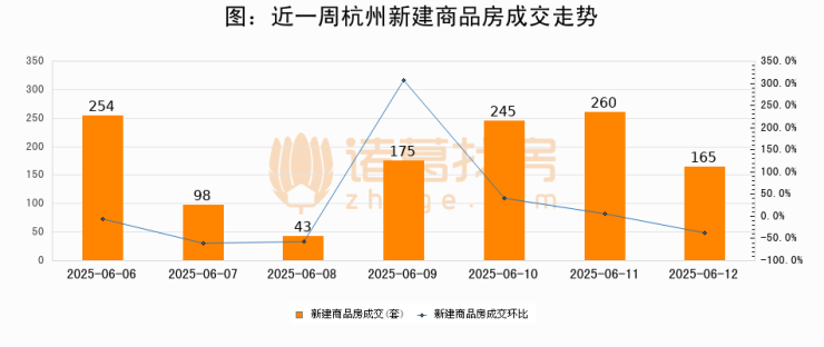【杭州成交日报】06月12日新房成交165套、二手房168套;涨价房源86套