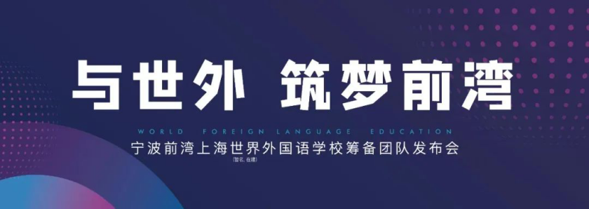 2021年4月14日,在宁波市杭州湾新区举办了一场“与世外,筑梦前湾——宁波前湾上海世界外国语学校(暂名,在建)筹备团队发布会”,均瑶集团重要领导、上海世外教育集团重要领导和旭辉集团重要领导等众多大咖出席,发布会上深入阐释了现代国际教育的理想化形态。