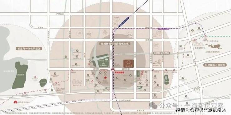 地段方面,项目位于青浦新城板块,邻近17号线青浦新城站仅约400米,其中,17号线已运营;公开招标资料显示,建设中的示范区线预计2027年底开通运营(嘉青松金线本站设施同步建设,但其整体线路处于规划中)。