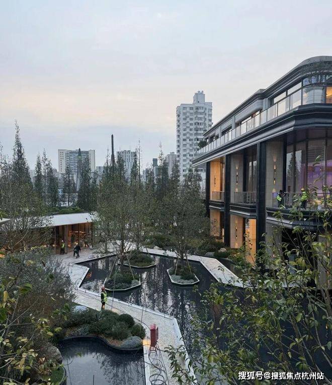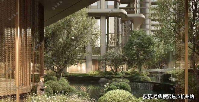 三层归家动线 :从地面景观层到架空层,再到入户层,穿越绿植、光影与水景,步步进入私域。