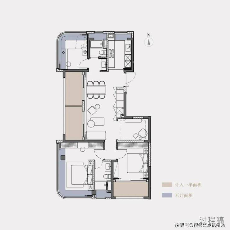 相较当下高层新房约75%的得房率,实际享受堪比120㎡户型空间!