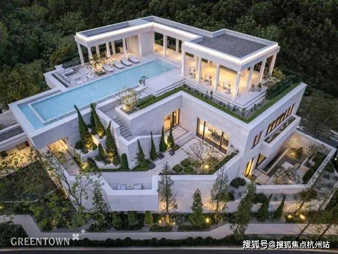 在被绿城定义的桃花源板块,杭州溪径恒庐是绿城低密初心的延续,也是对“日升月恒,亘古不变”的致敬。项目利用土地原有特质与肌理,以一条长约200米的法式柱廊串联两大会所,写意松弛的人生风景。