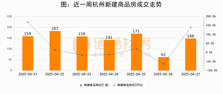 【杭州成交日报】04月27日新房成交148套、二手房310套;涨价房源4套