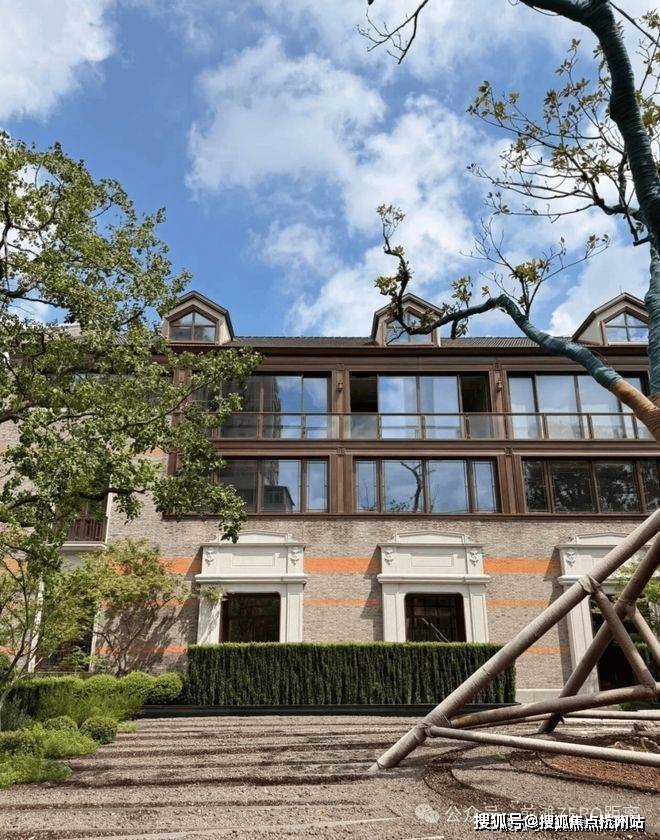 从庭园看向别墅,保留的老山墙、砖楣和门头,再加上悬挑阳台和层层露台,这种传统风貌带给人一种重见历史的感慨,又有温馨、宁静的现代舒适感。
