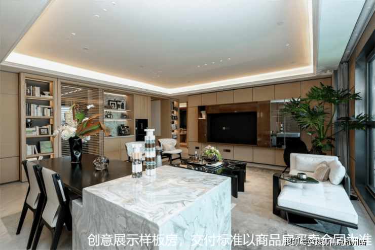 作为莘庄首个新规代宅,安高·海印华庭处处践行这份追求。 立面采用大面积铝板、石材(一二层局部)与玻璃幕墙,点缀少量真石漆,再加上 极简的立面轮廓,使得建筑整体通透轻盈,光影流转间,呈现出现代而璀璨的视觉质感。