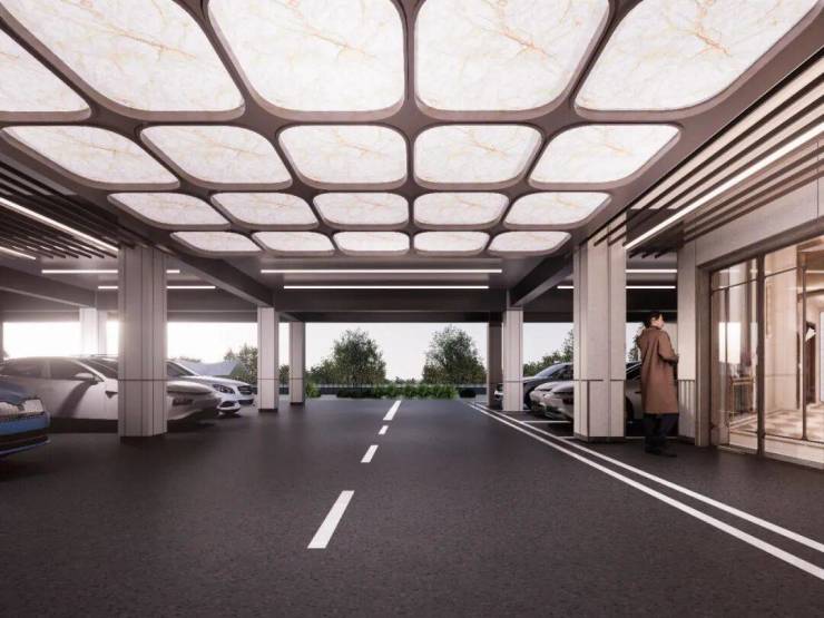 社区整体抬升约5米,车库置于首层,带来颠覆性体验。全架空层阳光车库,实现车辆平层进出、自然采光通风;全程无雨归家系统,业主从车库经电梯直达入户,风雨无油,从容归家;全步行化地面社区,车辆均停于架空层,地面层则成为安全、静谧的漫步花园与休闲场域。