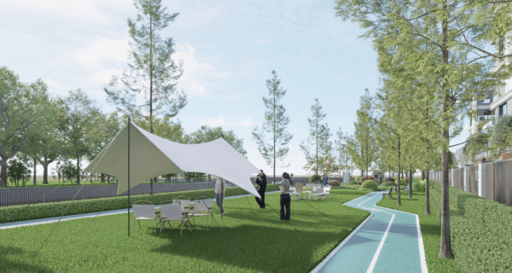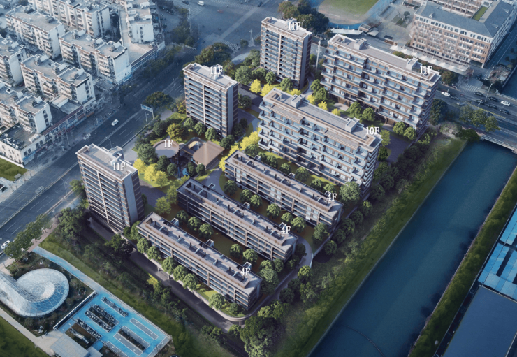 自然静谧,河岸即日常: 东临古塘河,延展约2600㎡水岸公园,漫步、亲子休闲举步即达,让自然成为家的延伸。