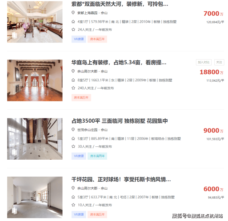 打开链家网不难发现,区域内的别墅项目动辄千万起步,三四千万的总价更是常态,甚至是上亿级别的别墅都比比皆是。