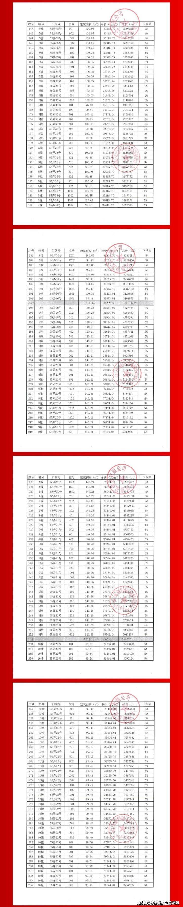 一房一价表: