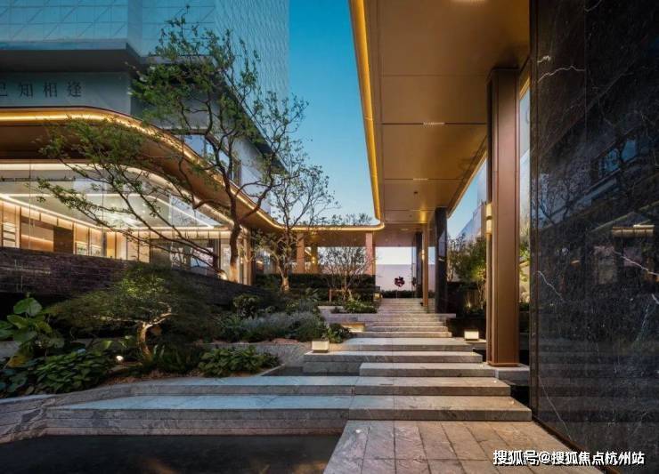 项目的庭院实景,可以明显感受到,它区别于之江以往的任何一个项目,最直观的体会就是“拾级而上,一步一景”。在绿城知海棠,所有景观、配套都是“流动”的,大尺度的庭院景观和立体园林体系,在不断地洄游且连续的漫步动线串联下,视觉形成了连续的观感通廊,一步一景。漫步其中,视线也不会被楼栋干扰,而是沿着台阶穿梭其中,美的体验感更为连贯、贴近。